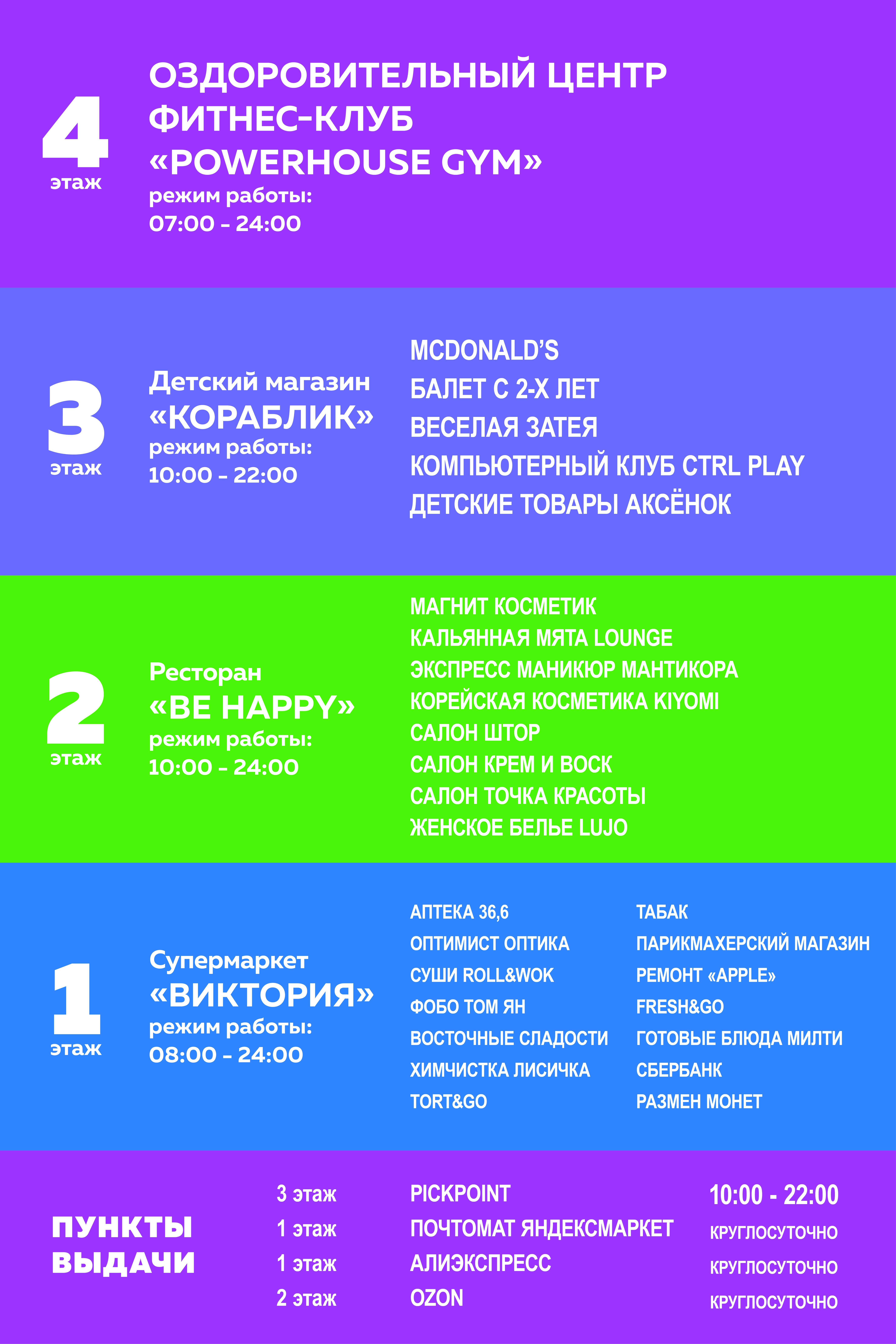 Поставили цель показывать только нужную посетителям информацию: режим работы, ключевых арендаторов.